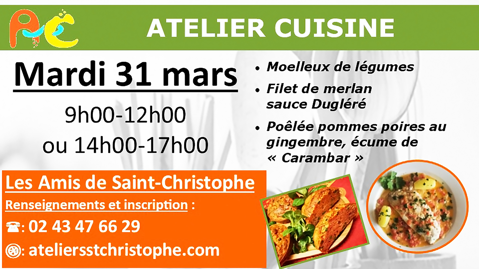 Le Chef Barbotin vous guidera dans la préparation de ces plats délicieux.